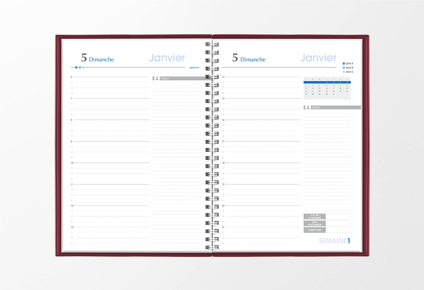 Optez pour l'agenda journalier personnalisé infirmière, 1 jour sur 2 pages, composé de 4 volumes trimestriels.