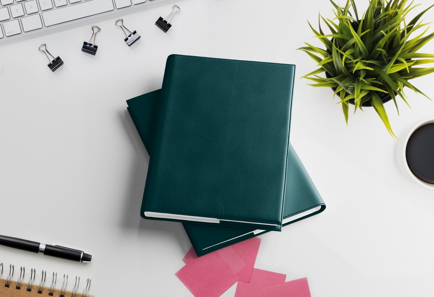 Sa couverture en simili cuir vert pétrole — élégante, moderne et profonde — allie la sophistication d'un coloris rare à la résistance d'un usage intensif quotidien.