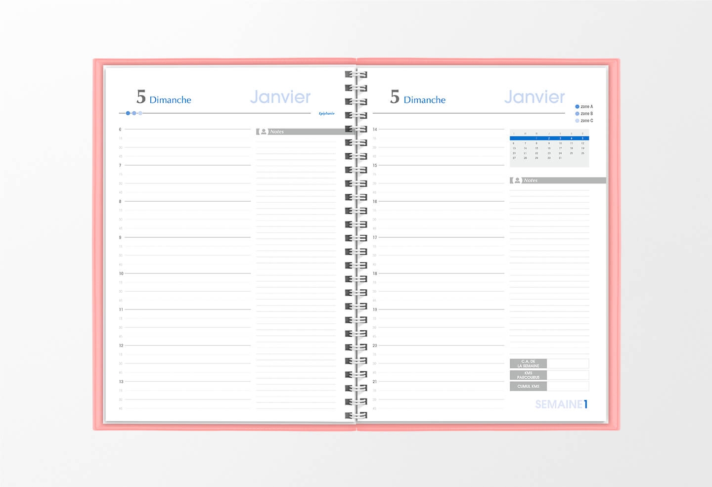 Optez pour l'agenda journalier personnalisé infirmière, 1 jour sur 2 pages, composé de 4 volumes trimestriels.