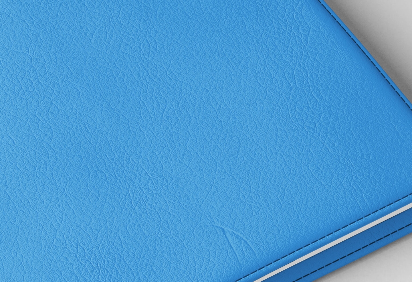 Sa couverture en simili cuir bleu azur — lumineuse, douce et apaisante — allie la sérénité du bleu ciel à la résistance d'un usage intensif quotidien.