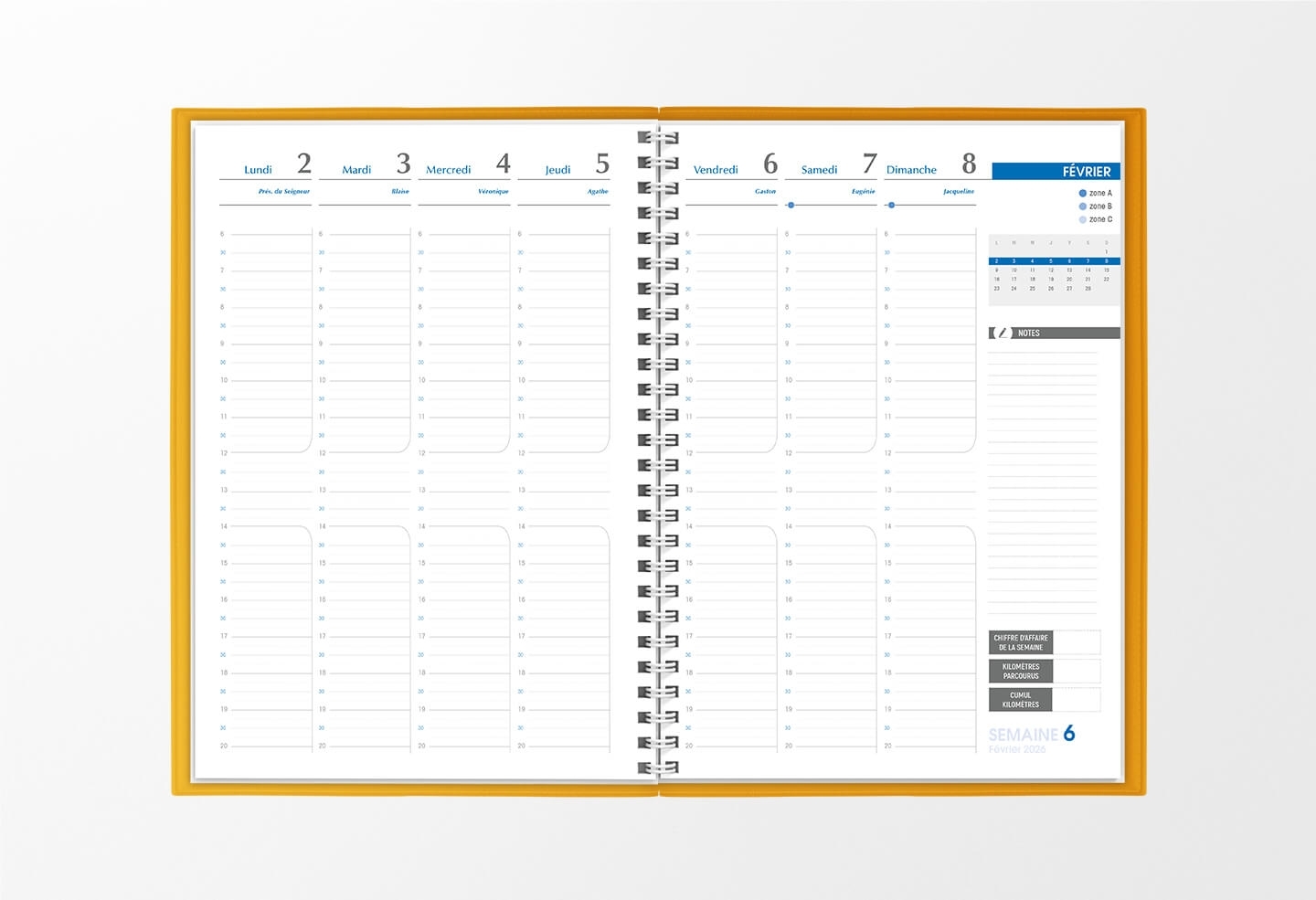 Optez pour l'agenda semainier personnalisé "infirmière libérale", 1 semaine sur 2 pages.
