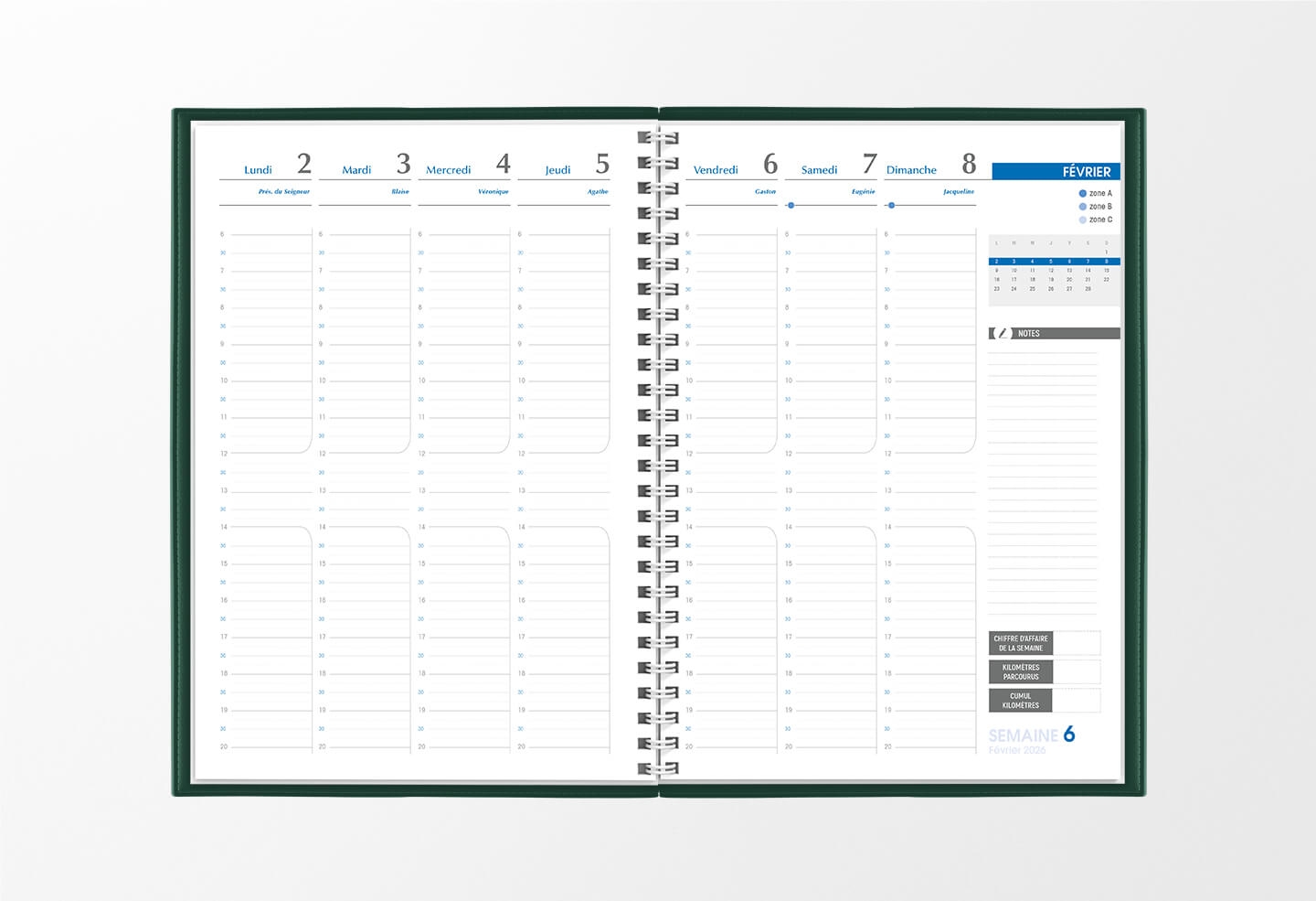 Optez pour l'agenda semainier personnalisé "infirmière libérale", 1 semaine sur 2 pages.